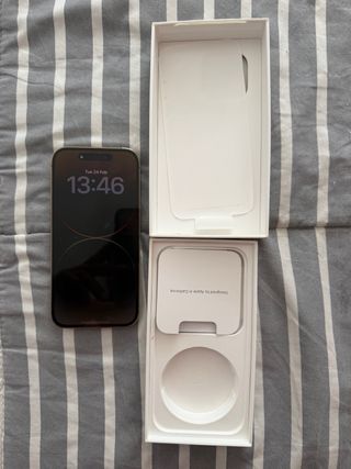 iPhone 14 Pro de 128 GB en color dorado, muy bien cuidado y en excelente estado. Nunca ha sido reparado y funciona perfectamente. Diseño elegante y rendimiento rápido, ideal si buscas un móvil premium a buen precio. Marcas de uso mínimas, viene con varias fundas.