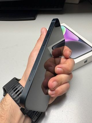 Teléfono móvil iPhone 14 en color negro de 128 Gb. El movil funciona perfectamente, lo vendo por que me he comprado otro superior. El movil tiene una pequeña marca en la parte superior desde el primer día (le di buen estreno) Quitando eso el movil esta perfecto, siempre con cristal y funda protectora. Se entrega en su caja y con todos los accesorios que encuentre por casa.