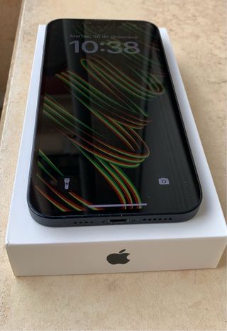 iPhone 12 con 128GB de almacenamiento en color azul oscuro. Con caja original y factura de compra. - Pantalla de 6.1 pulgadas. - Chip A14 Bionic. - Sistema de cámara dual. -79% de salud de batería. -Sin marcas de uso como se aprecia en las fotos, siempre con su funda y protector alante y atrás. -FACE ID funciona. La única pega es que no le funciona el altavoz de las llamadas de la parte superior, son 45€ cambiarlo, de ahí su precio, pero se puede llamar y contestar llamadas con modo altavoz de las llamadas. ALGO NEGOCIABLE.
