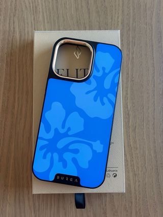 Funda móvil IPhone 14 Pro Max Burga. Modelo Lagoon. Colección resort. Funda increíblemente bonita y muy protectora. Absorbe los impactos, acabado resistente a arañazos, fondo suave con tacto a terciopelo y agarre seguro. Máxima protección. Estampado azul hawaiano. Precio en tienda 84,90€