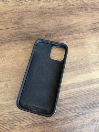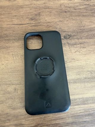 Funda negra para iPhone 14 Pro con sistema de montaje Quad Lock. - Diseño elegante y protector. - Mecanismo de bloqueo seguro. - Acabado mate.