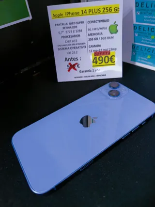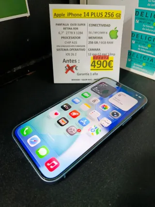 iPhone 14 Plus de 256GB en color azul, en perfecto estado. - Pantalla OLED Super Retina XDR de 6,7 - Procesador Chip A15 - Sistema Operativo iOS 26.2 - Conectividad 5G/NFC/WiFi 6 - Cámara dual de 12 MP - Garantía de 1 año - Seminuevo REALIZAMOS ENVÍOS A TRAVÉS MENSAJERÍA DE EMPRESA📦 🔝 INFORMÁTICA DE OCASIÓN Y EL MEJOR SERVICIO TÉCNICO INFORMÁTICO 🛠 🔝APP-INFORMATICA-DELICIAS-VALLADOLID🔝 C/Carmelo,4-bis ☎️983 477 364📱632 185 890