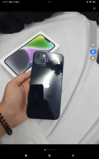 iPhone 14 Plus en color negro con 256GB de almacenamiento. Cambio iPhone 14 plus en perfecto estado sin marcas de uso todo original nunca reparado salud de batería 82% dándole mucho uso dura el día entero con uso normal día y medio ,cambio por móvil de gama alta mando fotos escucho ofertas