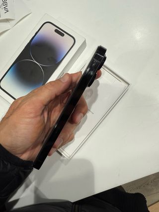 Vendo iPhone 14 Pro en color Space Gray de 128GB. Estado como nuevo ni el minimo rasguño, siempre con protector, protector de camara, funda. 94% bateria 🔋 Con caja y accesorios originales Iphone nuevo a estrenar de Enero de 2025 Comprado en Fnac en Vigo. GARANTIA todavia 1 años en FNAC