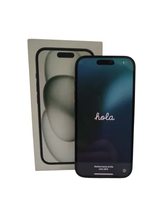 Teléfono móvil iPhone 15 con capacidad de almacenamiento de 128 GB. En muy buen estado, con detalles esteticos de uso normal que se ven en la foto. Siempre usado con funda y vidrio protector. Bateria al 88 %. viene con su caja original. - Diseño moderno y elegante. - Pantalla nítida y vibrante.