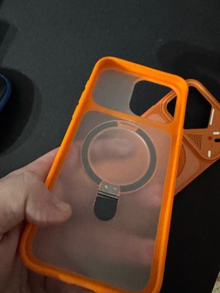 "TOTALMENTE A ESTRENAR. NO SE HAN USADO" **NEGOCIABLE** Se vende fundas al estilo de la gama iPhone 17 Pro Max para el iPhone 15 Pro Max. Ese diseño anaranjado es tendencia y llama mucho la atención. Literalmente la gente te va a decir si te has comprado el 17 Pro Max, a mi me lo dicen cada día. Fundas para iPhone con borde naranja y soporte magsafe para carteras, cargadores, soportes, etc. - Diseño moderno y llamativo. - Protección para tu dispositivo.