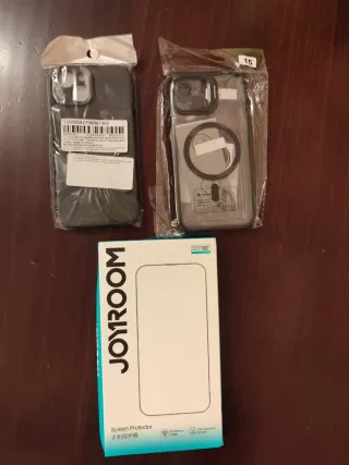 Lote de accesorios para iPhone. - Dos fundas protectoras para iPhone. - Dos protectores de pantalla de la marca JOYROOM.
