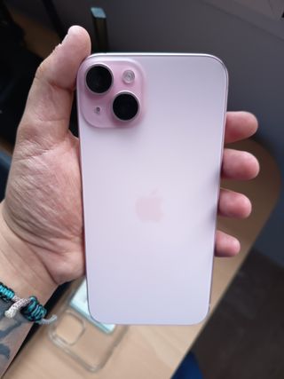 Teléfono móvil iPhone 15 en color rosa, con 128 GB de almacenamiento. Siempre se ha usado con funda y protector de pantalla. - Protector de pantalla incluido. - Funda protectora. - Caja original y cable del cargador - varias fundas protectoras - 2 cristales templados/espias - 1 protector para la cámara - lo vendo porque me he comprado otro.