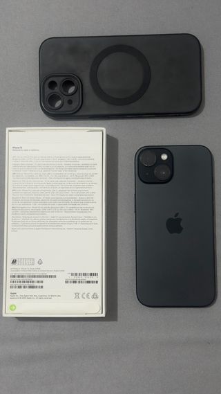Teléfono móvil iPhone 15 en acabado negro o gris espacial. - Diseño elegante y moderno. - Pantalla de alta resolución. - Cámara avanzada para fotos y vídeos. -Sin rotos ni arañazos -Tengo la caja original