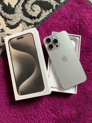 iPhone 15 Pro en su CAJA . ESTADO: en perfecto estado. Todo original salud de BATERÍA: 88% (aguanta sin problemas un dia entero) CAPACIDAD: 256gb todo funciona correctamente: Face ID, cámara, sonido, etc entrega en mano para cualquier cosa no dudes en preguntarme;)