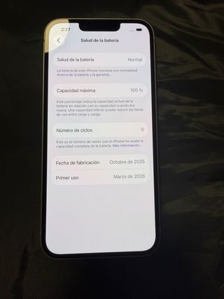 Estas nuevo . Con 0 ciclos de carga salud 100%🔋 garantías:hasta 04/03/2027