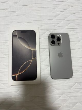 Teléfono móvil iPhone 16 Pro. - Pantalla de alta resolución. - Cámara avanzada. - Diseño elegante. El teléfono está en perfectas condiciones ni un solo rasguño siempre con protector de pantalla y funda lo que se aprecian en la foto de la pantalla es el protector la pantalla está intacta sin un solo rasguño
