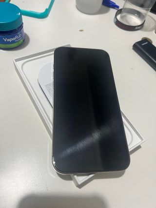 Iphone 16 pro en perfecto estado de funcionamiento. Batería al 90%. Tiene una grieta en la parte trasera por una caída y un golpe en la parte superior izquierda de la carcasa como se ve en la foto. Ninguna de las dos taras se notan mucho, ni afectan al funcionamiento. Comprado en octubre de 2024, en garantía hasta octubre de 2026.