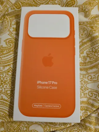 Funda protectora para iPhone 17 Pro en color naranja. Con pequeño desgaste de roce en la parte superior. Entrego en vereda de los estudiantes. Leganes
