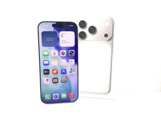 Teléfono móvil iPhone 17 Pro Max en color plata. - Diseño elegante y moderno. - Acabado en plata y blanco.
