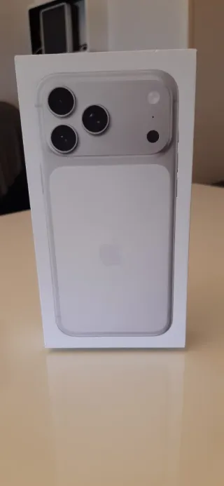 IPhone 17 Pro Max de 512Gb de almacenamiento en color Silver precintado y sin activar. Para mi gusto el color más bonito de la gama 17 Pro Max. Regalo por objetivos de empresa. Garantia Apple oficial de 1 año, una vez activado. Preferible entrega en mano y solo envío por Correos con número de seguimiento previo pago Bizum o transferencia inmediata. Incluyo funda de silicona y protector de pantalla. Más fotos si se requiere, pero por favor, no cambios y no ofertas absurdas.