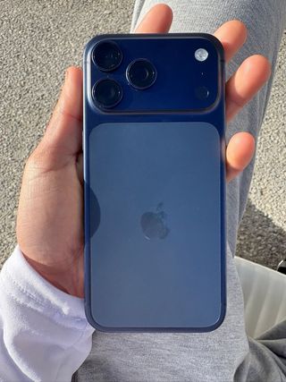 Teléfono móvil iPhone 17 Pro Max en color azul marino. Lo usé solo una semana. Lo deje barato porque necesito el dinero. Bateria 100% Completamente nuevo