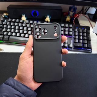 Funda protectora para iPhone 13 pro max. Transforma la trasera al modelo iPhone 17 pro max. Con protecciòn para las lentes. Sin Mag Safe, aunque se adhiere a la base imantada y carga sin problema. Solo abierta para hacer fotos.