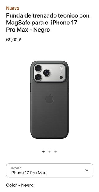 Funda de trenzado técnico con MagSafe para el iPhone 17 Pro Max - Negro La funda de trenzado técnico con MagSafe diseñada por Apple está pensada para que personalices y protejas tu iPhone 17 Pro Max con estilo. La funda está fabricada en un tejido técnico a medida compuesto de poliéster 100 % reciclado. Sus hilos en diferentes tonos se entrelazan en un telar de Jacquard que le da una sensación tridimensional y un acabado lleno de color. Los laterales de la funda están recubiertos de TPU ligeramente texturizado para facilitar el agarre y los botones de aluminio anodizado ofrecen una respuesta precisa. Viene con dos enganches...