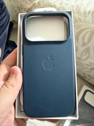 Funda de tela para iPhone 17 Pro en color azul. - Diseño texturizado. - Logo de Apple grabado. Nueva a estrenar.