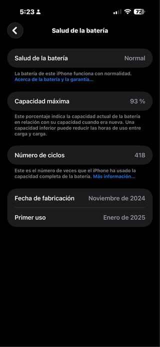 Descripción Vendo iPhone 16 Pro Max 256 GB en estado impecable, cuidado desde el primer día. ✅ Batería 100% (183 ciclos) ✅ Primer uso: julio 2025 (fabricación mayo 2025) ✅ Siempre con funda + protector ✅ Seguro vigente (se puede entregar nuevo) ✅ Face ID, cámaras, altavoces, botones: todo perfecto Se entrega con caja y accesorios y posibilidad de probar en mano. La raja que se aprecia en pantalla es en el protector de pantalla. Vendo por cambio a iPhone 17 Pro Max.