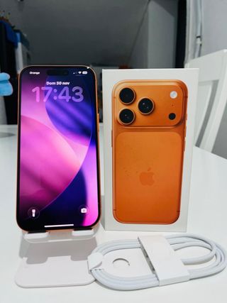 Teléfono móvil iPhone 17 Pro en color naranja. En perfecro estado sin golpe ni raya. Bateria al 100% Todo original. Con caja