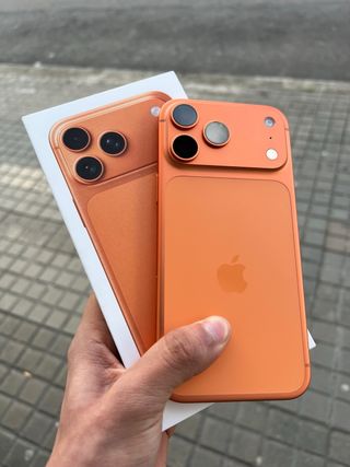 Este iPhone 17 Pro Max presenta un llamativo acabado en tonos naranjas y dorados, con una gran capacidad de almacenamiento. - Acabado en naranja y dorado. - Capacidad de 1TB.