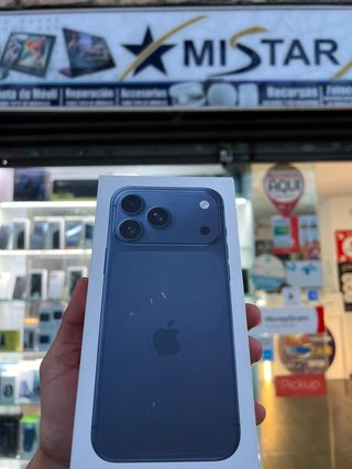 Teléfono móvil iPhone 17 Pro en color azul, con capacidad de almacenamiento de 512GB. El dispositivo se encuentra sellado y sin abrir. - Capacidad de 512GB. - Color azul. - Con 3 años de garantía y factura a nombre de cliente ✅ Intercambio posible con otro móvil 📲 Disponible en tienda física en Barcelona ✅