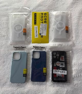 ¡Pack estreno para iPhone 16 Pro Max! 📱✨ Todo NUEVO en sus bolsas. ✅ Incluye 9 artículos en total: • 2x Fundas Transparentes MagSafe: Carga inalámbrica y anti-shock. • 2x Fundas Silicona: Azul marino y Azul claro. • 1x Funda Diseño: Cassette Retro Negro. • 4x Cristales Templados: Pack de protección pantalla. ✨ Estado: Nuevo a estrenar. Ideal para proteger tu nuevo iPhone por muy poco dinero. 📦 ¡Hago envíos y Lotes! Mira mi perfil para combinar con otros productos y ahorrar en gastos de envío. 🤝 #iPhone16ProMax #MagSafe #Fundas #Lote #Nuevas #CristalTemplado #Accesorios #Carcasa