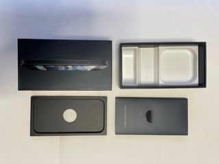 Caja original para iPhone 5 de 16GB. Incluye todos los compartimentos interiores para organizar los accesorios. - Caja exterior negra. - Bandeja interior blanca. - Compartimento para accesorios.