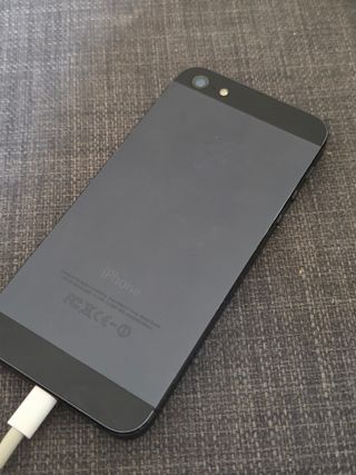 Vendo un iPhone 5 de color negro. Está en buenas condiciones, aunque presenta algunas señales de uso.