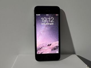 Teléfono móvil Apple iPhone 5s en color gris espacial. Aparentemente no funciona porque no enciende. Por lo demás está en perfecto estado, no tiene golpes, muy bien conservado. Pequeña marca en la pantalla o protector (se aprecia en la foto). No recuerdo si era concretamente de 16gb, puede que sea de 32gb o 64gb.