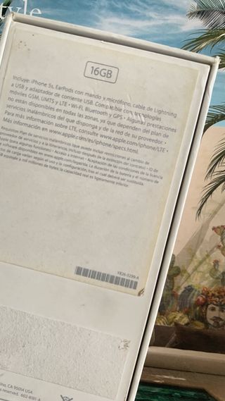 Esta es la caja original de un iPhone 5S. - Caja de cartón blanca. - Diseño minimalista.