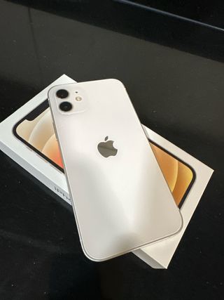 Teléfono móvil iPhone 12 en color blanco y con 128GB de almacenamiento. Salud batería 79% - Pantalla de 6.1 pulgadas. - Chip A14 Bionic.