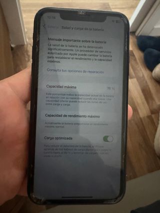 - Pantalla Liquid Retina HD - Chip A13 Bionic - Sistema de cámara dual - Resistencia al agua y al polvo - Capacidad 128 GB - 6,06 pulgadas - 71% salud de batería -sin cable -con toda las carcasas que se muestran de regalo