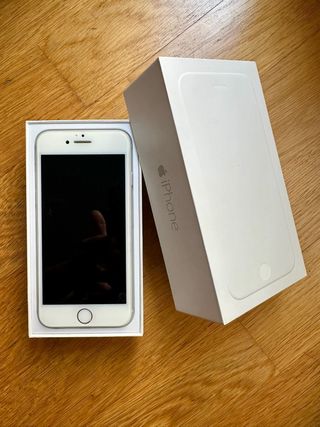 Vendo iPhone 6 de 128GB color plata, en muy buen estado estético, sin golpes ni arañazos importantes. へ • Batería al 100% de salud • Funciona perfectamente y está restaurado de fabrica • Incluye solo el teléfono Ideal como segundo móvil o para quien busque gran capacidad de almacenamiento. - Incluye caja original. - Listo para usar.