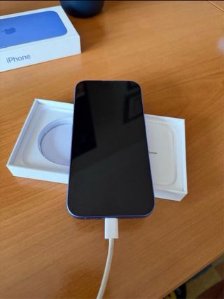 iPhone 13 en color azul, con 128GB de almacenamiento. Se encuentra en excelente estado, como nuevo. - Incluye caja original. - Cable de carga original en perfecto estado. - Auriculares EarPods originales sin apenas uso y perfecto estado con conector Lightning. - Funda con batería portátil 6.000mAh negra con soporte. - Funda protectora azul con poco uso. - 2 fundas más negra y azul ya desgastadas. - Protector de lentes de cámara sin colocar. - Protector de pantalla ya puesto en el iPhone recientemente, como nuevo.