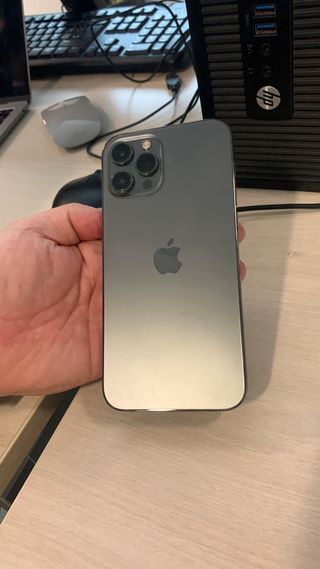 Teléfono móvil iPhone 12 Pro Max en color gris espacial. - Pantalla de 6.7 pulgadas. - Sistema de triple cámara trasera. -bateria cambiada en tienda oficial hace 4 meses garantia en el movil hasta septiembre. -tiene algunos signis de desgaste la rotura es el protector de pantalla -128 gb -viene con caja