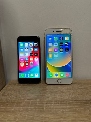 Iphone 6: 32gb, salud de batería al 98%. Funcionando a la perfección. Fallos: el touch id no funciona y la cámara trasera aparece en negro (se dejó funcionando) y una marca en la pantalla que casi no se aprecia (ver fotos). Tiene marcas de uso. Solo está disponible el Iphone 6, el 8 plus ya se ha vendido. Se entrega totalmente liberado y formateado. Se vende para reparar (no devoluciones)