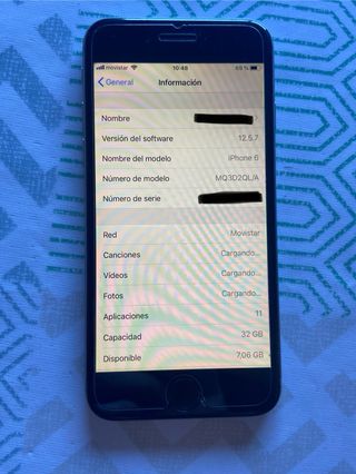 Teléfono móvil iPhone 6S en color plata. - Capacidad de almacenamiento de 32 GB. - Se entrega en caja pero sin cable ni cargador. Siempre ha estado con funda y protector por lo que no tiene ni un rasguño. Salud de la bateria: 86% Regalo funda negra.