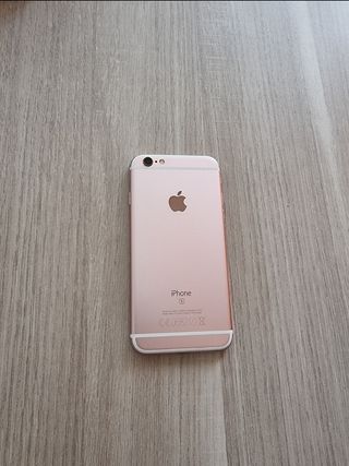 Iphone 6s Rosa, de 32GB ROM. Muy bien conservado, aunque se le acaba la batería enseguida (3 horas de actividad continua como máximo). Tiene un pequeño rasguño en una esquina (se puede apreciar en la foto). No tiene factura ni garantía, pero sí cable para cargador.