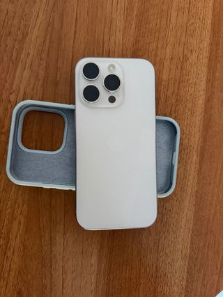 Teléfono móvil iPhone 16 Pro. - Color blanco. - Pantalla de 6.1 pulgadas. - Capacidad de 128 GB. - Tiene caja y sus cables - Funda de regalo 99% de bateria