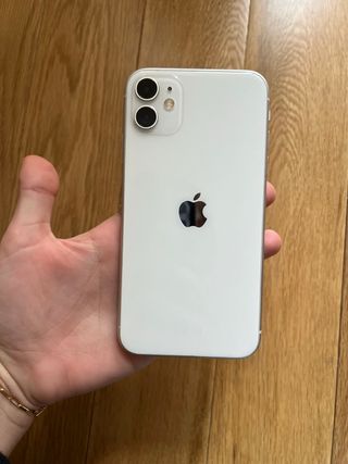 Teléfono móvil iPhone 11 en color blanco. - Pantalla de 6.1 pulgadas. - Cámara dual de 12 MP. - Chip A13 Bionic. batería al 80%
