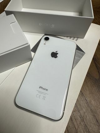 Teléfono móvil iPhone XR en color blanco y con 64GB de almacenamiento. Bateria al 79% - Pantalla de 6.1 pulgadas. - Cámara trasera de 12MP. - Cámara frontal TrueDepth de 7MP. - Chip A12 Bionic. Único propietario Siempre con fundas Entrega en mano en Valencia