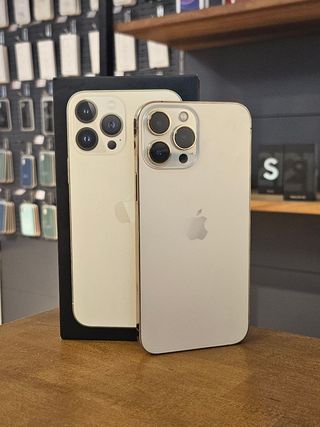 Teléfono móvil iPhone 13 Pro Max en color dorado y con 256GB de almacenamiento. Salud bateria: 79% - Pantalla de 6.7 pulgadas. - Sistema de triple cámara profesional. - Chip A15 Bionic.