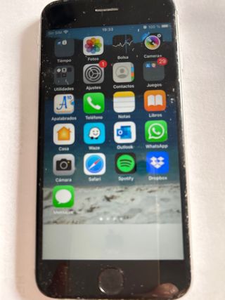iPhone 6s Plus gris Espacial en perfecto funcionamiento con 32gb. Tiene una ligera linea en la parte inferior del dispositivo, pero no impide a su funcionamiento. Se vende con caja original (sin cargador) y dos fundas del móvil.