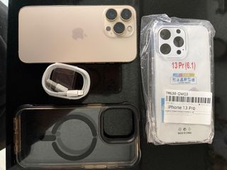 iPhone 13 Pro Dorado + Funda + Cable (77% bat)