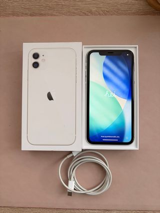 Teléfono móvil iPhone 11 con 64 GB de almacenamiento. - Color blanco. - Pantalla de 6.1 pulgadas. - Cámara dual de 12 MP Vendo iPhone en buen estado con todo funcional. Lo único que tiene cambiado es la batería por lo demás esta todo bien Incluye fundas y protector