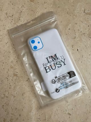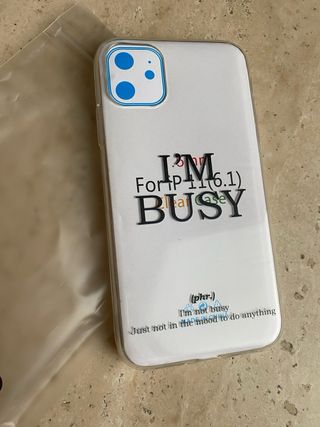 Funda transparente para iPhone 11 (6,1 pulgadas), totalmente sin usar, con diseño minimalista - Compatible con iPhone 11 - Grosor 1,5 mm: fina y ligera - Material flexible y resistente - Protege bordes y parte trasera - Diseño transparente con texto: “I’M BUSY” - Acceso total a botones y cámara - Incluye embalaje original Ideal si buscas una funda sencilla, moderna y cómoda para el día a día.
