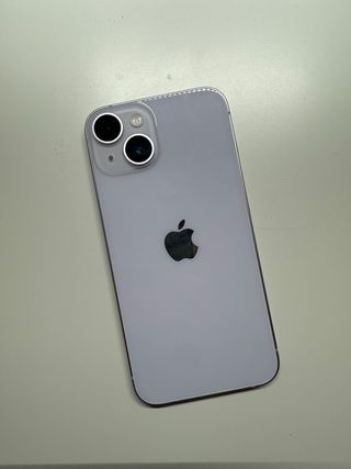 Teléfono móvil iPhone 14 en un llamativo color morado. - Diseño elegante y moderno. - Acabado brillante.